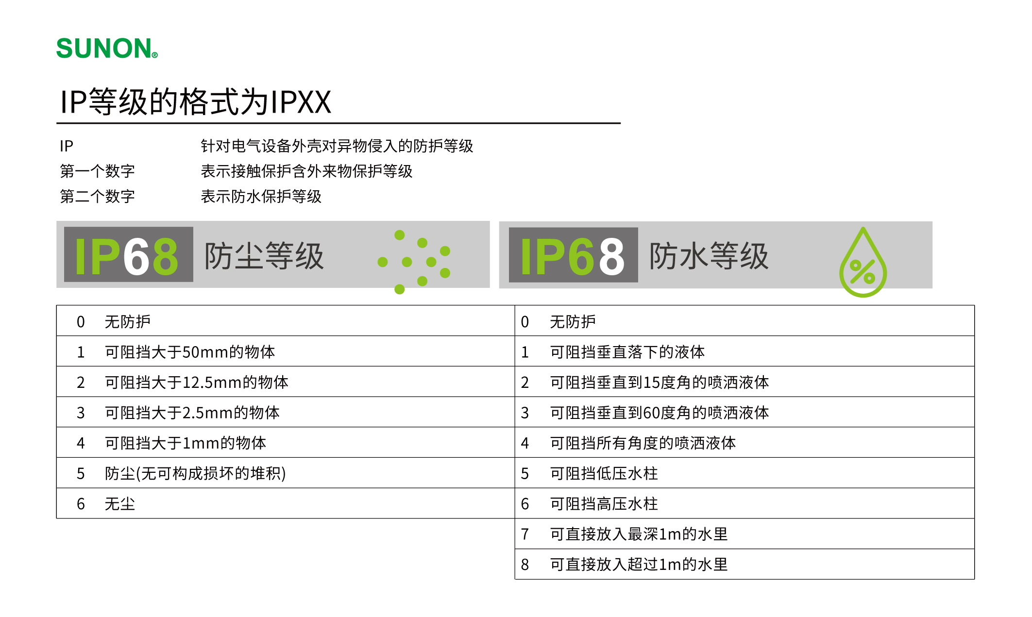 SUNON IP防護風扇依室內戶外應用環境的需求推出標準Level 1-4的保護等級設計服務,采用先進IP技術和高質量防護材料,為各式應用系統規劃優化IP風扇防護組合,且符合國際測試標準(防水防塵IEC60529 / 防鹽霧ASTM B117),嚴格把關高質量的產品防護設計,確保SUNON IP風扇系列具備最佳的防水防塵耐鹽霧性,除了能應用在戶外應用產業上,也能被應用在其他需要面對嚴苛環境挑戰下,和全天候不間斷的長時間運作需求的設備系統,目前已成功應用在多類的產業,提供高效散熱和長效使用壽命。